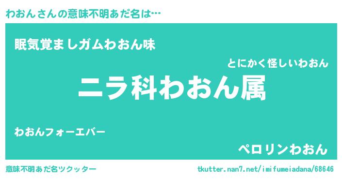 | 欧米人風あだ名 | 『アンジェラ・わおん』『ダニエルわおん』 |
