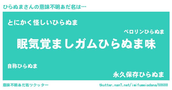 | ヒーロー風カッコイイあだ名 | 『天空の使者ひらぬま』『銀牙騎士ヒラ』 |