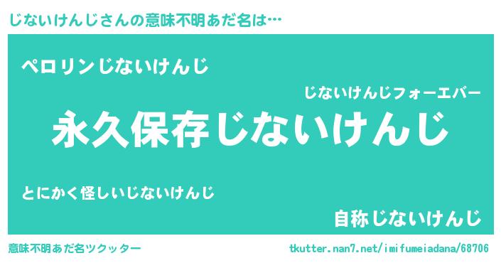 | 男性向けラノベタイトル風あだ名 | 『じないけんじという概念が存在しない退屈な世界 』 |