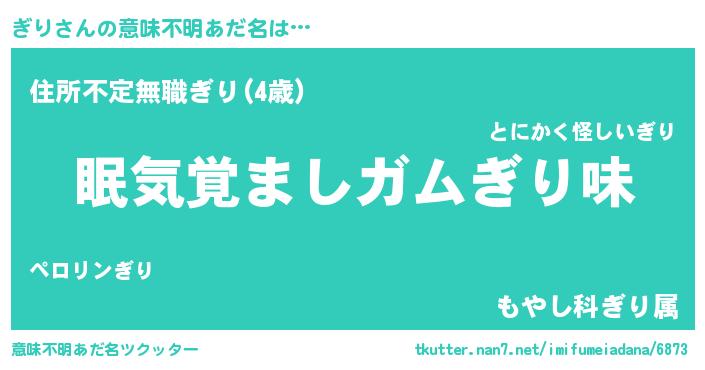 | 男性向けラノベタイトル風あだ名 | 『ぎりに滅ぼされるだけの簡単なお仕事です』 |