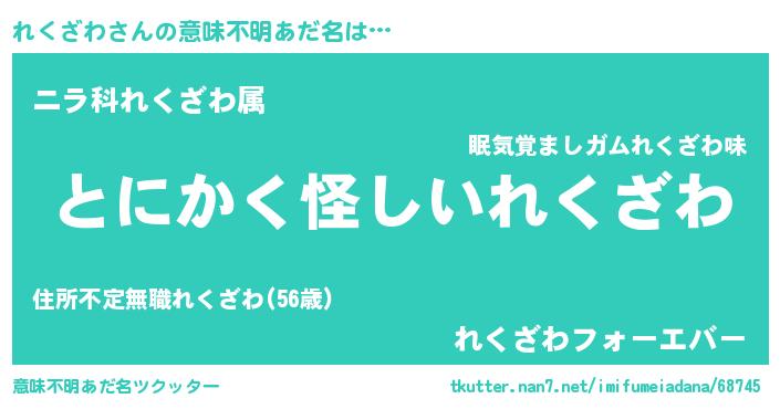 | 男性向けラノベタイトル風あだ名 | 『れくざわの嫁は女の子じゃないと思った?』 |