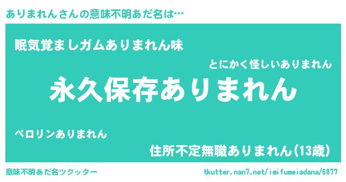 | 胡散臭い通販商品みたいなあだ名 | 『絶対に幸福をもたらす水素水…その名も「ありまれん」』 |
