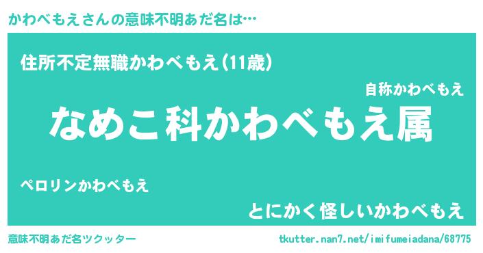 | 男性向けラノベタイトル風あだ名 | 『転生したらかわべもえだった件』 |