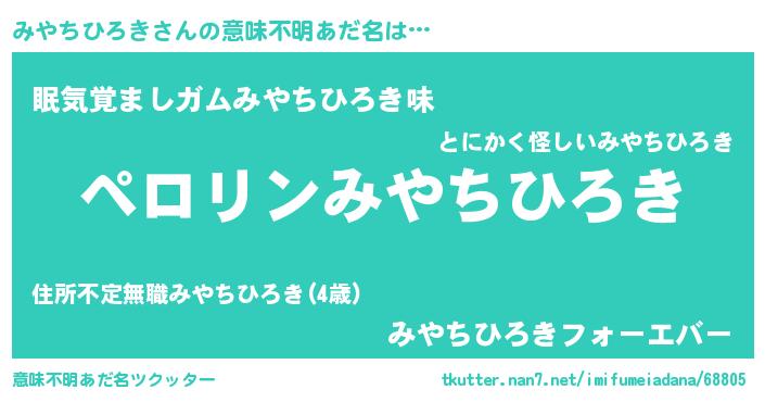| ヒーロー風カッコイイあだ名 | 『スーパーミヤチヒロキ』『銀牙騎士ミヤ』 |