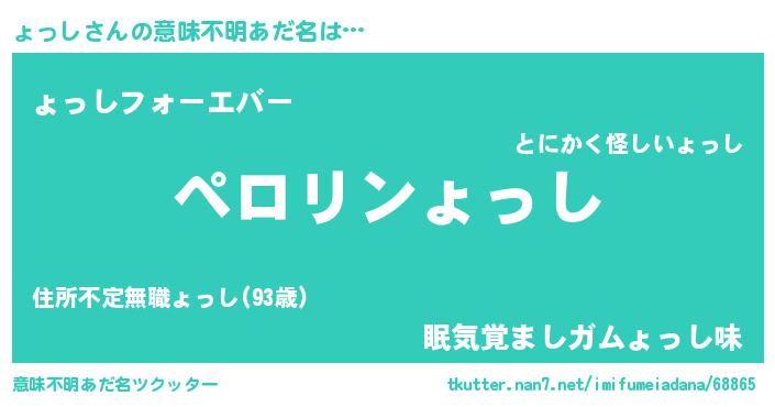 | ポケモン風あだ名 | 『ョッチュウ』『ョッシダネ』 |
