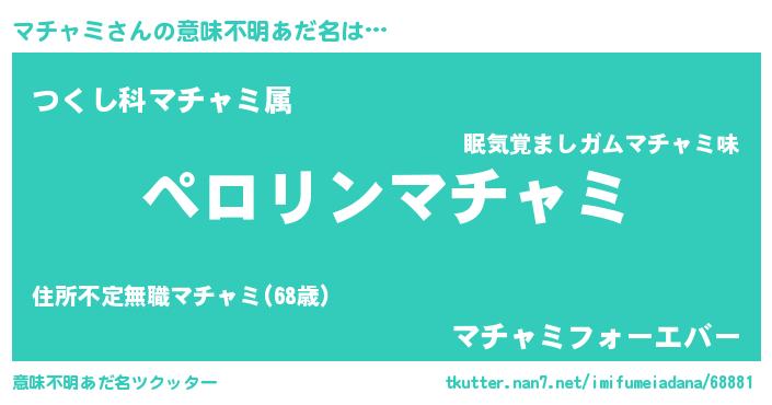 | 男性向けラノベタイトル風あだ名 | 『マチャミの憂鬱』 |