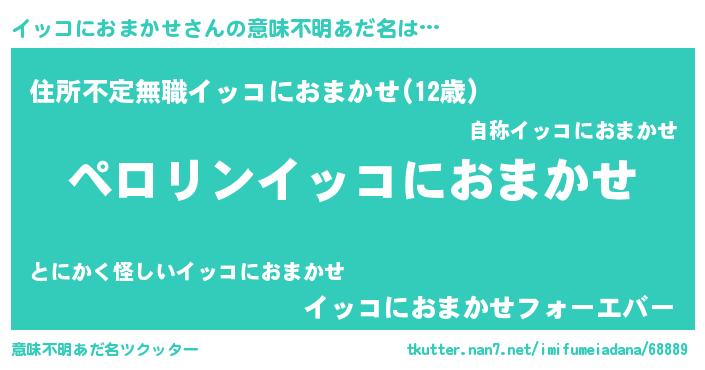 | 男性向けラノベタイトル風あだ名 | 『イッコニオマカセアートオンライン』 |