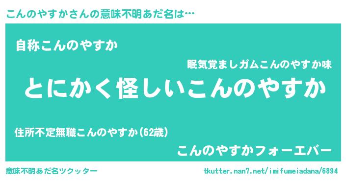 | 胡散臭い通販商品みたいなあだ名 | 『信頼と実績のサプリメント…その名も「こんのやすか」』 |