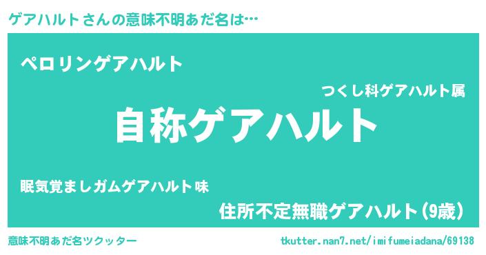 | 女子向けラノベタイトル風あだ名 | 『ゲアハルトなんてお断りですっ。』 |