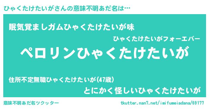 | 胡散臭い通販商品みたいなあだ名 | 『必ず成功するブレスレット…その名も「ひゃくたけたいが」』 |