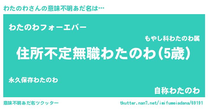 | 料理風あだ名 | 『わたのわのカルパッチョ風』 |