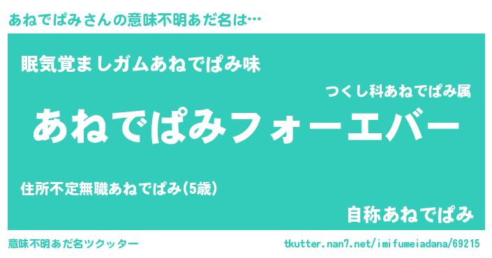 | ファンタジー風あだ名 | 『エターナルアネデパミー』『ゼアネトゥ』 |