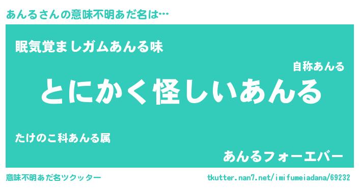 | 女子向けラノベタイトル風あだ名 | 『あんるは平凡を望む』『あんる恋絵巻』 |