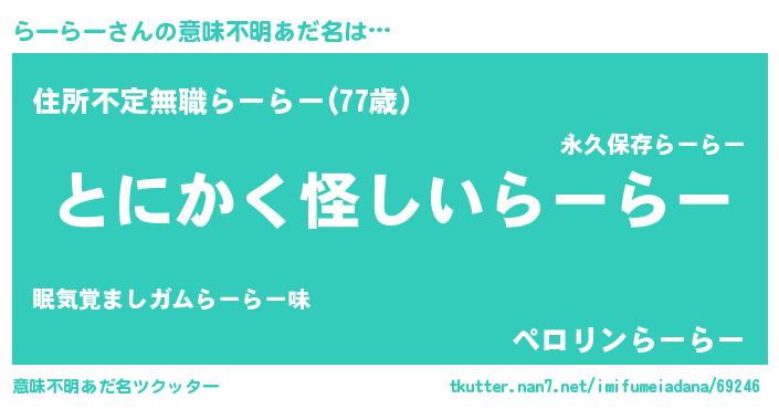 | ヘコむあだ名 | 『らー太郎』『らーもー』『なまこ酢』 |