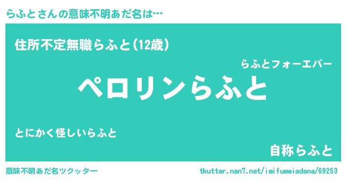 | 男性向けラノベタイトル風あだ名 | 『らふとの憂鬱』『はたらくらふとさま!』 |
