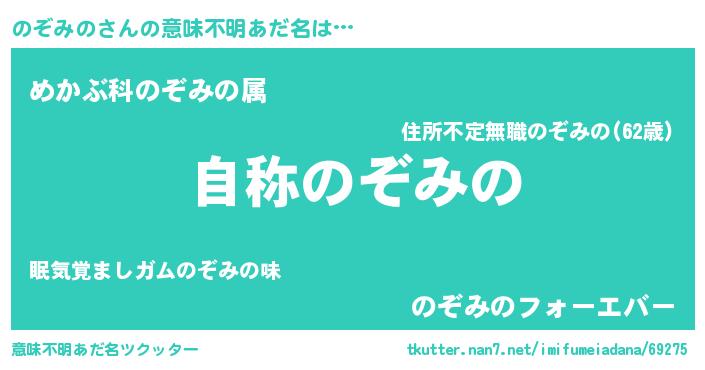 | 男性向けラノベタイトル風あだ名 | 『Re:のぞみのから始める異世界生活』 |