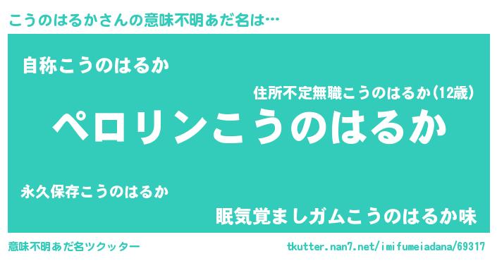 | 男性向けラノベタイトル風あだ名 | 『こうのはるかの憂鬱』 |
