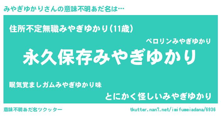 | 女子向けラノベタイトル風あだ名 | 『異世界で失敗しない100のみやぎゆかり』 |