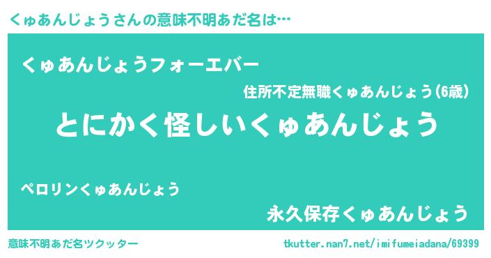 | 男性向けラノベタイトル風あだ名 | 『ダンジョンにくゅあんじょうを求めるのは間違っているだろうか』 |