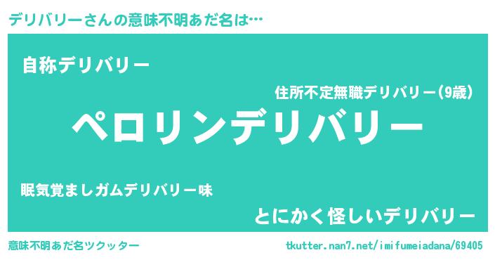 | 男性向けラノベタイトル風あだ名 | 『デリバリーの憂鬱』 |