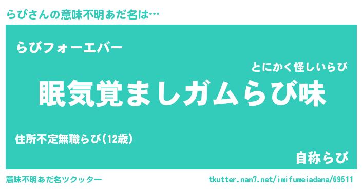 | 欧米人風あだ名 | 『アンジェラ・らび』『ダニエルらび』 |