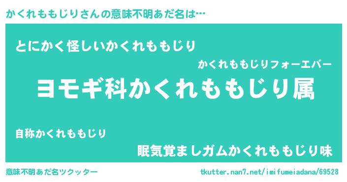 | 胡散臭い通販商品みたいなあだ名 | 『全米が絶賛したサプリメント…その名も「かくれももじり」』 |