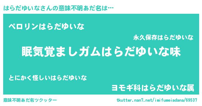 | 男性向けラノベタイトル風あだ名 | 『おまえをオタクにしてやるから、俺をはらだゆいなにしてくれ! 』 |