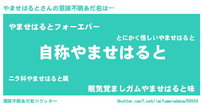 | 男性向けラノベタイトル風あだ名 | 『Re:やませはるとから始める異世界生活』 |