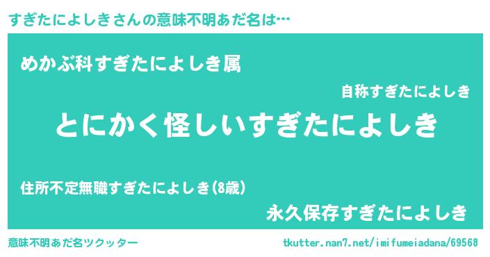 | 男性向けラノベタイトル風あだ名 | 『すぎたによしきに滅ぼされるだけの簡単なお仕事です』 |