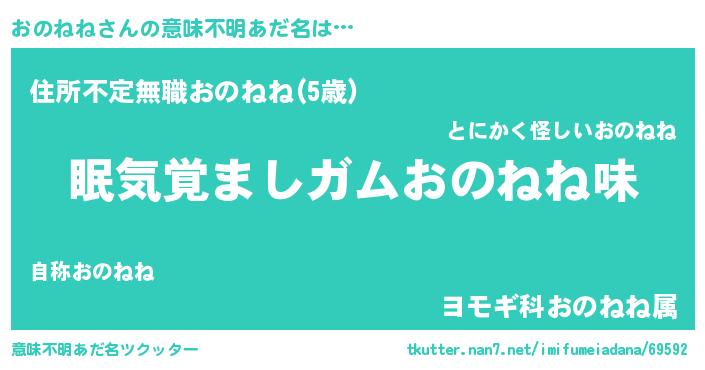 | ヘコむあだ名 | 『おのを』『おのねね(小並感)』 |