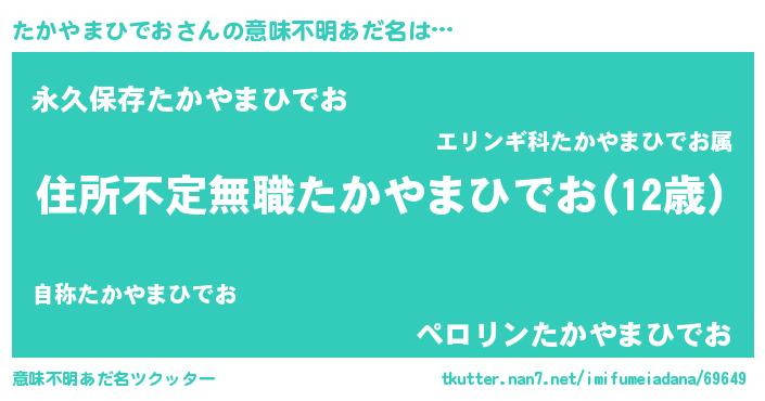 | ヘコむあだ名 | 『たかやまひでお(笑)』『たかにー』 |