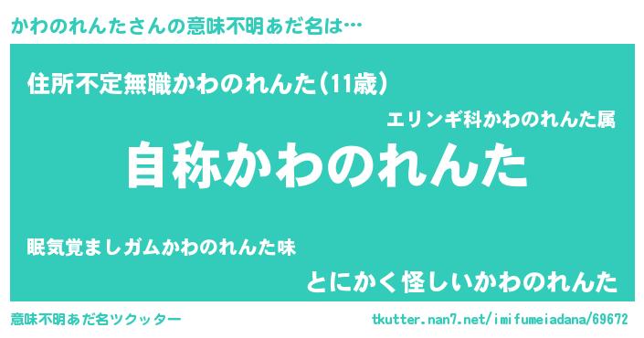 | ヘコむあだ名 | 『かわ太郎』『かわのれんた(笑)』 |