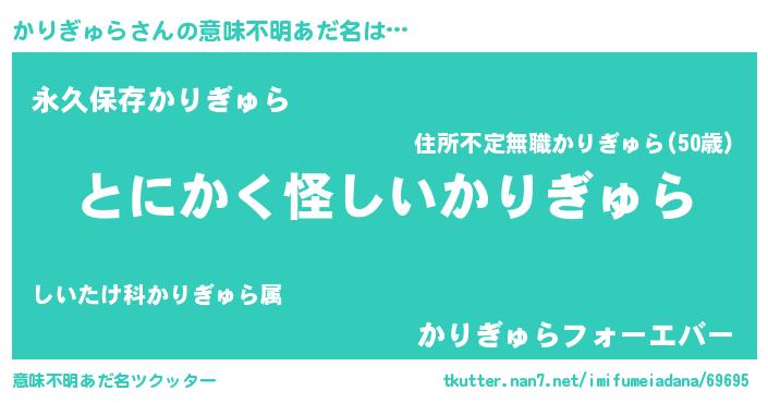 | 男性向けラノベタイトル風あだ名 | 『かりぎゅらの嫁は女の子じゃないと思った?』 |