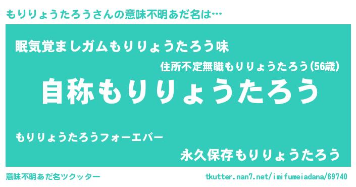 | 男性向けラノベタイトル風あだ名 | 『Re:もりりょうたろうから始める異世界生活』 |