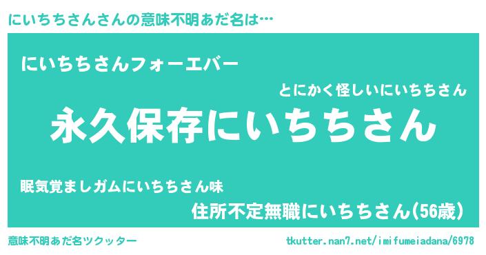 | 男性向けラノベタイトル風あだ名 | 『はたらくにいちちさんさま!』 |