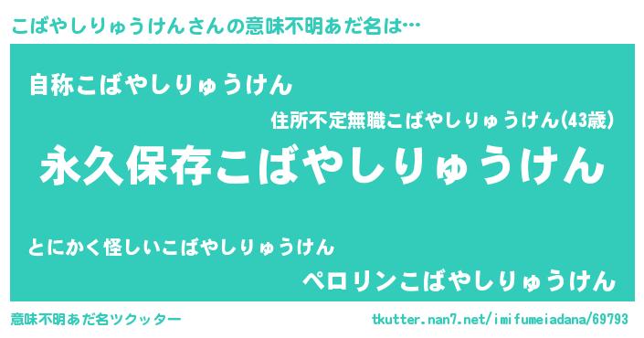 | 男性向けラノベタイトル風あだ名 | 『こばやしりゅうけんという概念が存在しない退屈な世界 』 |