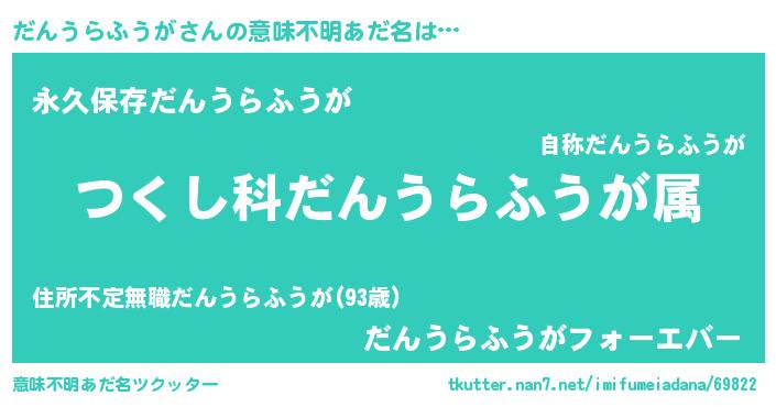 | 男性向けラノベタイトル風あだ名 | 『だんうらふうが~年齢イコール彼女いない歴の魔法使い~』 |