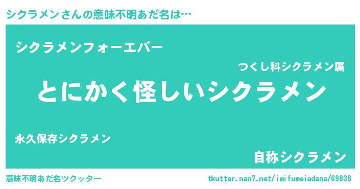 | ヒーロー風カッコイイあだ名 | 『黄金騎士シク』『ネオシクラメン』 |