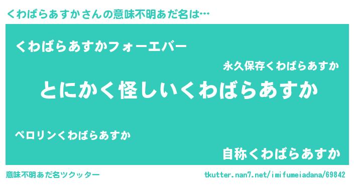 | 欧米人風あだ名 | 『ウサインくわばらあすか』 |