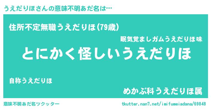 | 女子向けラノベタイトル風あだ名 | 『うえだりほの卵を拾いまして』 |