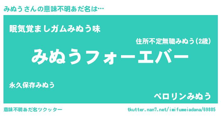 | ヒーロー風カッコイイあだ名 | 『ウルトラみぬうマン』『スーパーミヌウ』 |