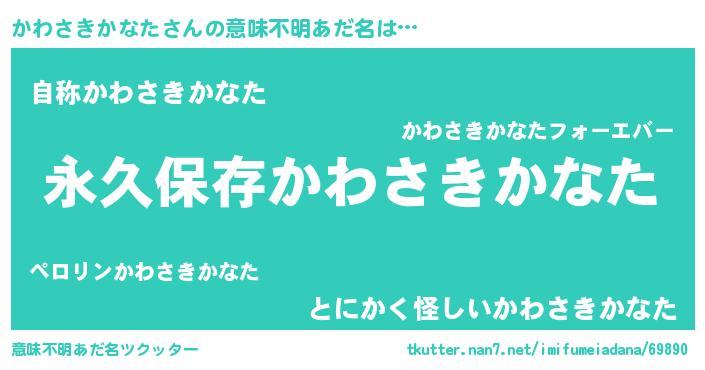 | ヒーロー風カッコイイあだ名 | 『ネオカワサキカナタ』『天弓騎士カワ』 |