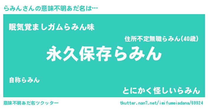 | 男性向けラノベタイトル風あだ名 | 『らみんという概念が存在しない退屈な世界 』 |