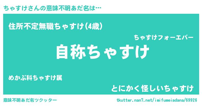 | 女子向けラノベタイトル風あだ名 | 『闇のちゃすけ』『ちゃすけの婚約者』 |