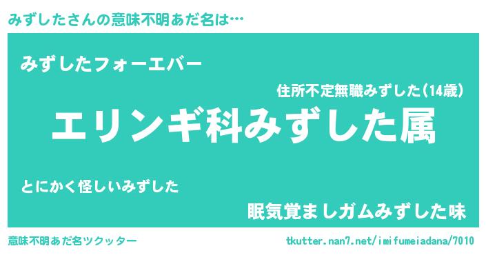 | ポケモン風あだ名 | 『メロミッズ』『ミズキング』 |