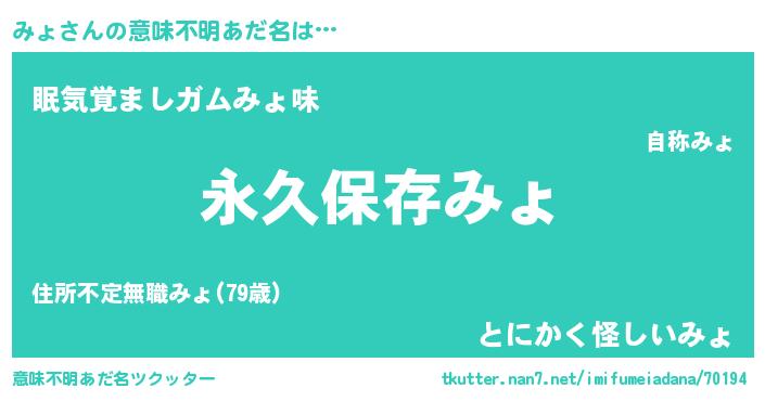 | 胡散臭い通販商品みたいなあだ名 | 『絶対に幸福をもたらす健康食品…その名も「みょ」』 |