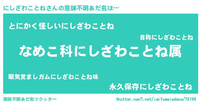 | 男性向けラノベタイトル風あだ名 | 『転生したらにしざわことねだった件』 |