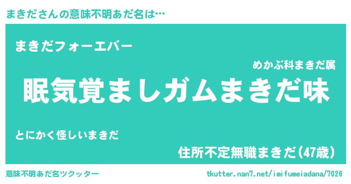| 男性向けラノベタイトル風あだ名 | 『まきだに滅ぼされるだけの簡単なお仕事です』 |