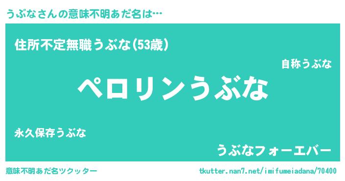 | 欧米人風あだ名 | 『マイケルうぶな』『ダレノガレうぶな』 |