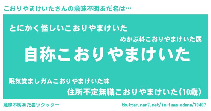 | ヘコむあだ名 | 『こおぷりん』『こおりやまけいた(苦笑)』 |
